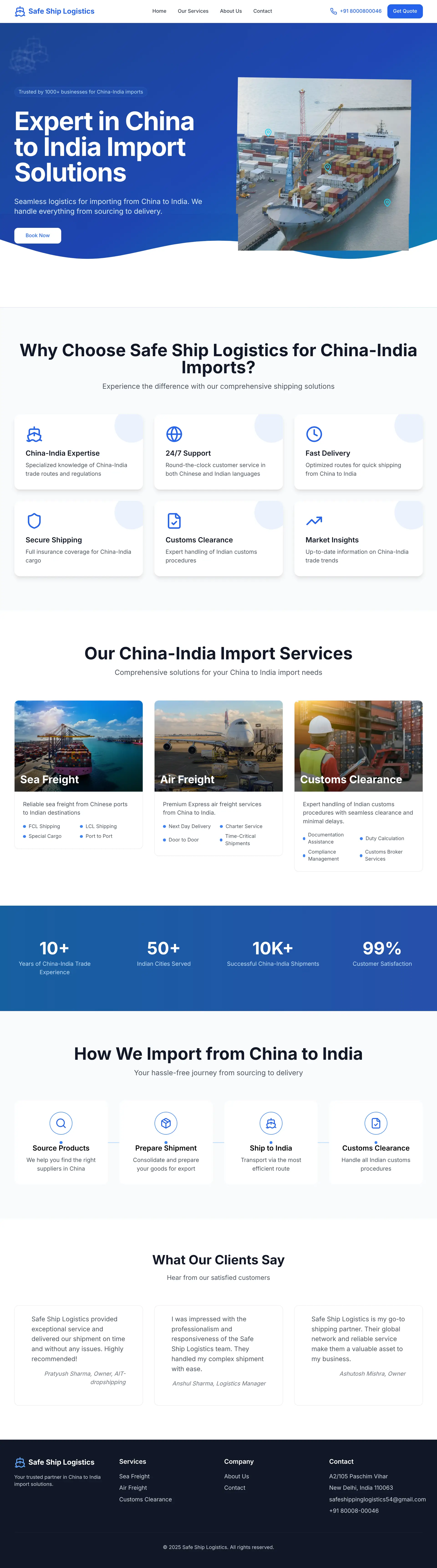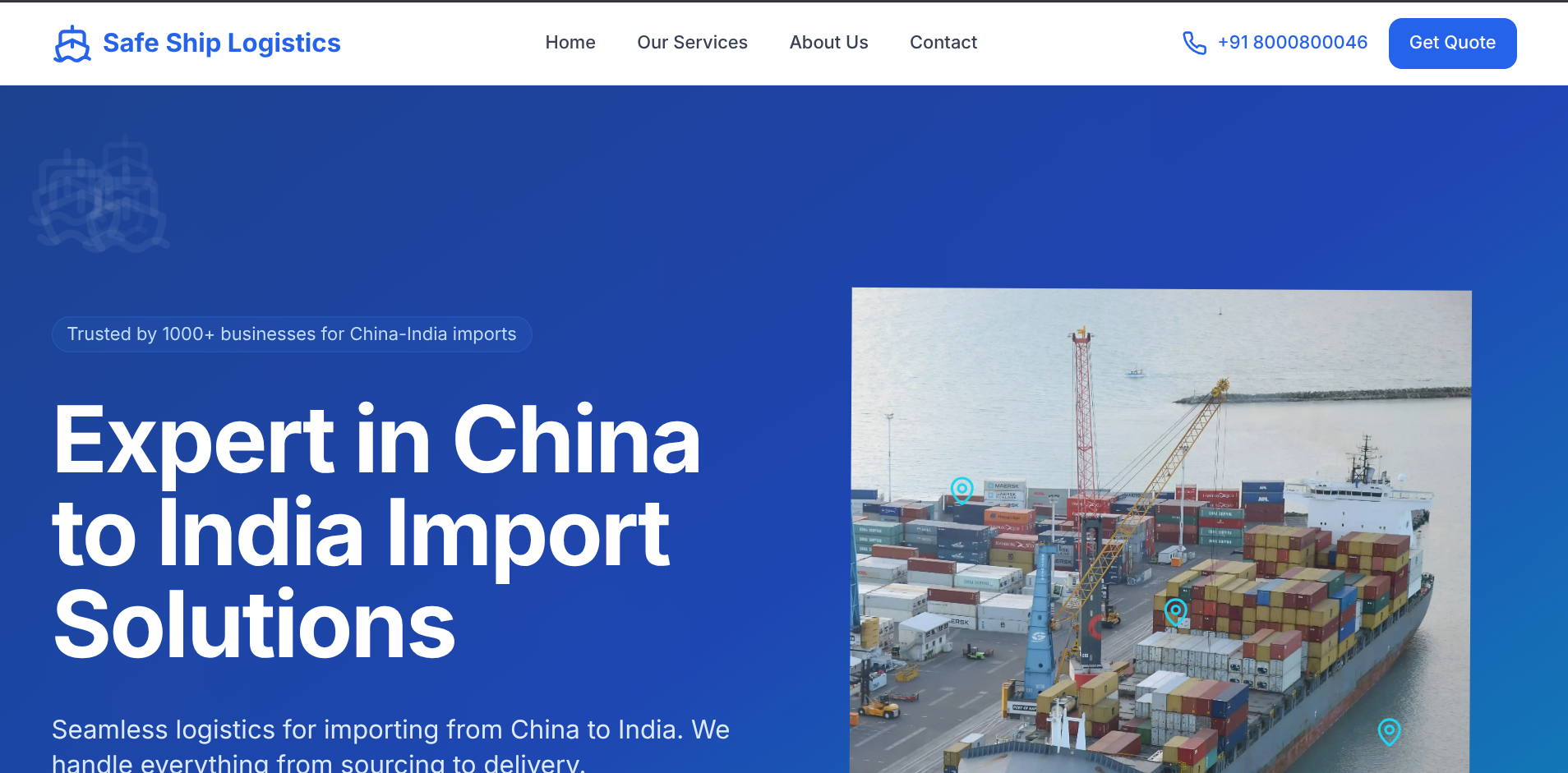 Safe Shipping Logistics is a modern logistics platform that streamlines international shipping operations, imports, and supply chain management. It offers real-time shipment tracking, route optimization, automated notifications, and user-friendly dashboards for clients and admins, providing a seamless shipping experience.
